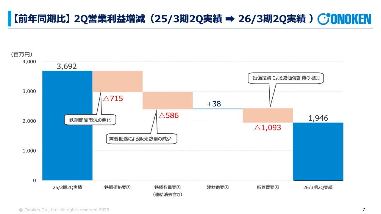 【前年同期比】2Q営業利益増減(25/3期2Q実績→26/3期2Q実績)