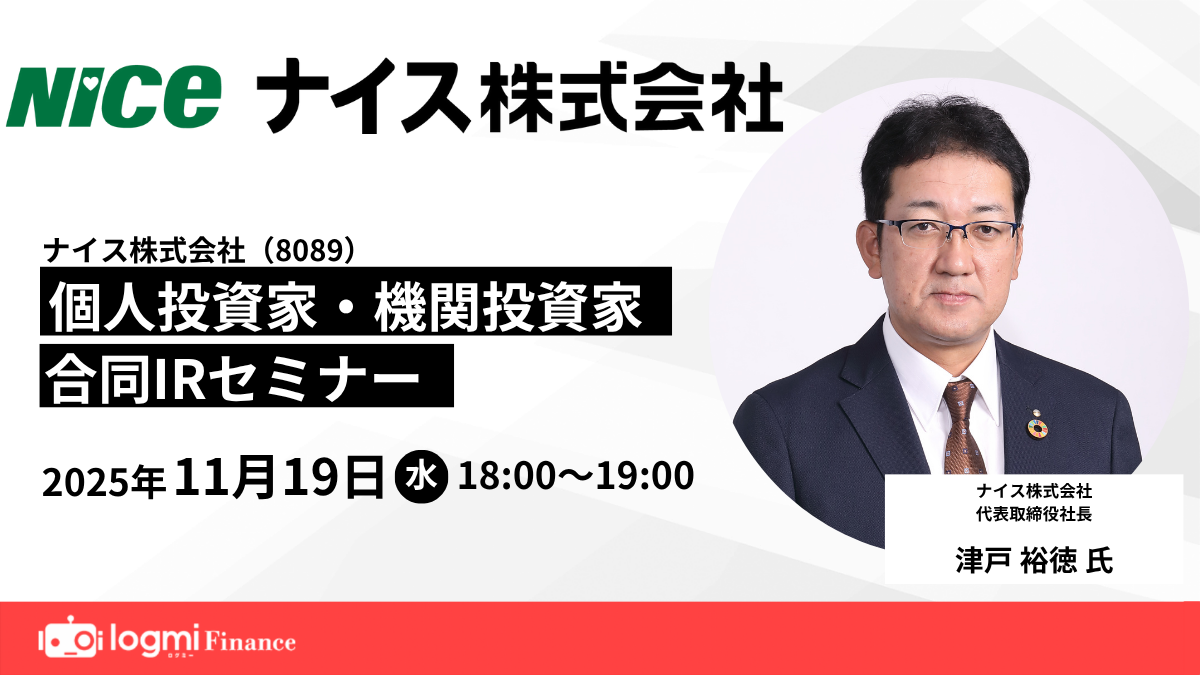 事業内容や成長戦略に触れ、「もっと詳しく知りたい」「経営トップの考えを直接聞きたい」と感じた方へ。ナイス株式会社 代表取締役社長・津戸裕徳氏が自ら最新の業績や今後の成長戦略、投資家が注目すべきポイントをライブ配信で丁寧に解説します。