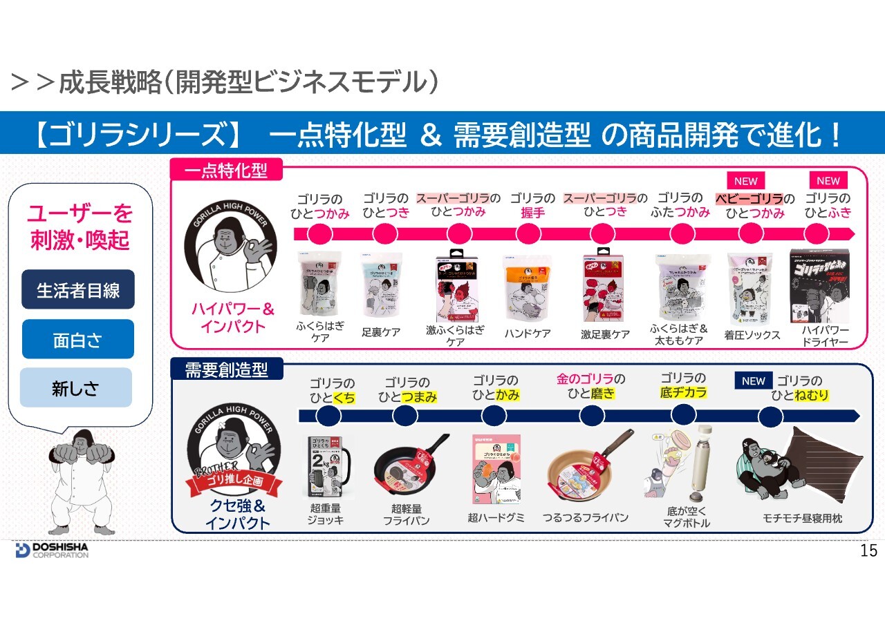 「家庭用品」では、米国発のキッチンブランド「コレール」のフライパンや、ゴリラシリーズのスピンオフ企画として展開した超軽量フライパン「ゴリラのひとつまみ」などの新規販売が奏功しました。