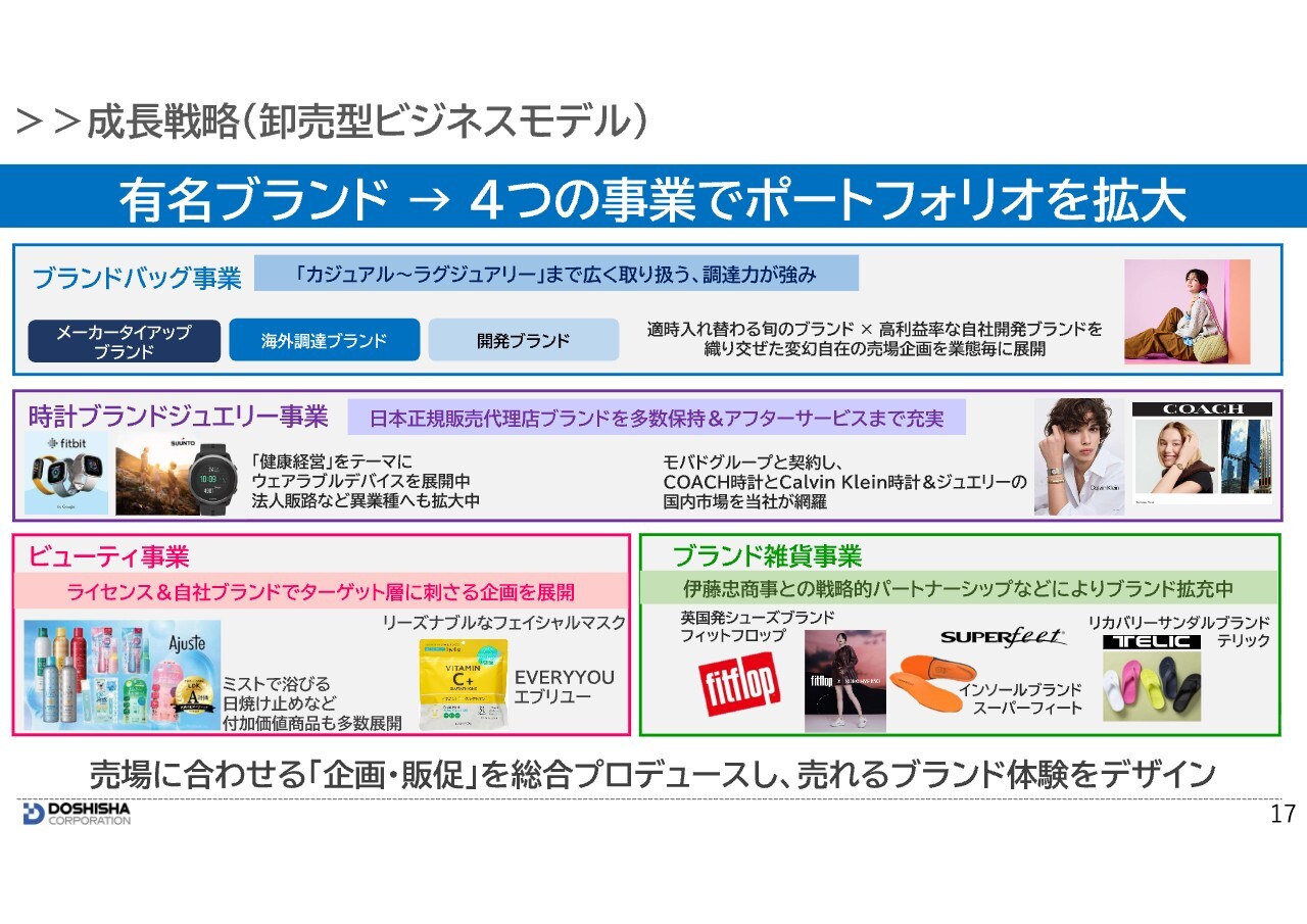 また、各ポートフォリオの取り組みとして、ブランド雑貨事業では、販売代理店となるブランドとの連携強化に加え、自社で公式HPを運営するなど、ブランド体験を自ら発信する取り組みも進めています。