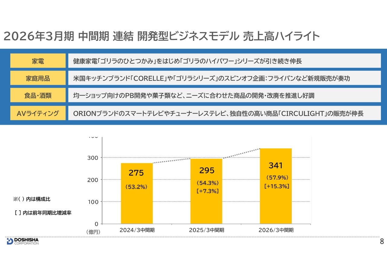 開発型のハイライトです。主に、「家電」と「家庭用品」、「食品・酒類」、「AVライティング」の販売が伸長しました。