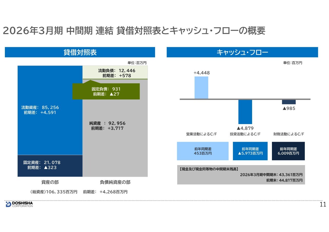 2026年3月期 中間期 連結 貸借対照表とキャッシュ・フローの概要