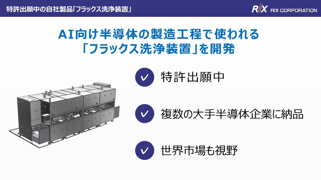 また、市場にはいくつかの洗浄方法がある中で、御社のフラックス洗浄装置がデファクトスタンダードになる可能性やその将来性について教えてください。