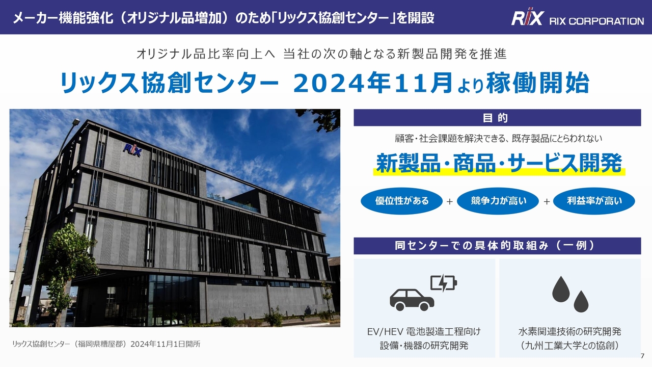 メーカー機能強化(オリジナル品増加)のため「リックス協創センター」を開設