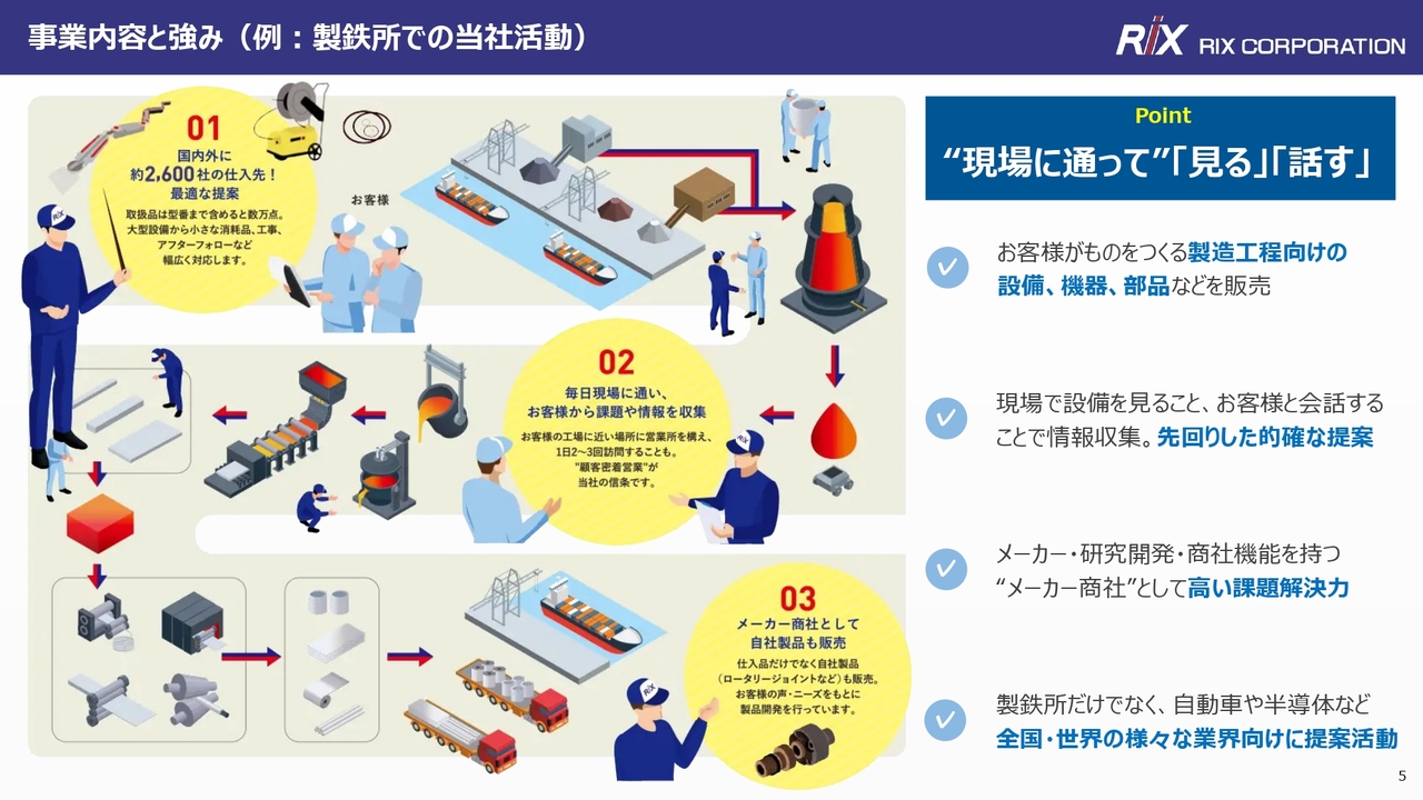 事業内容と強み(例:製鉄所での当社活動)