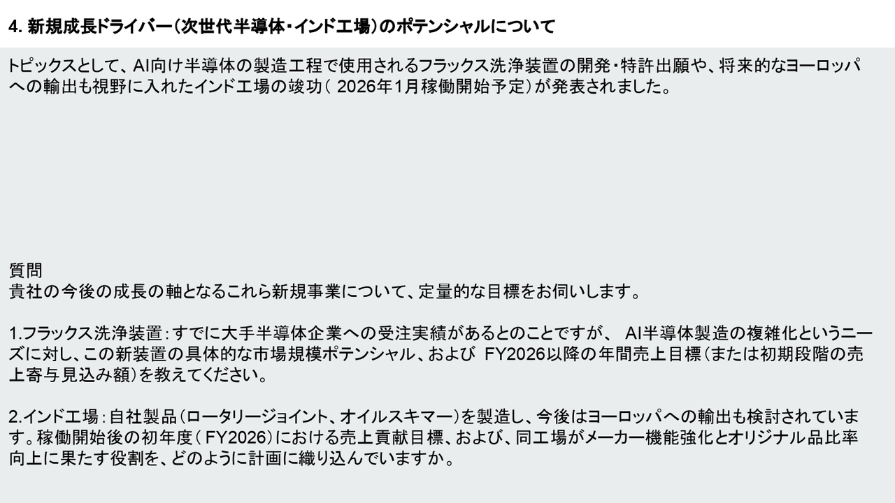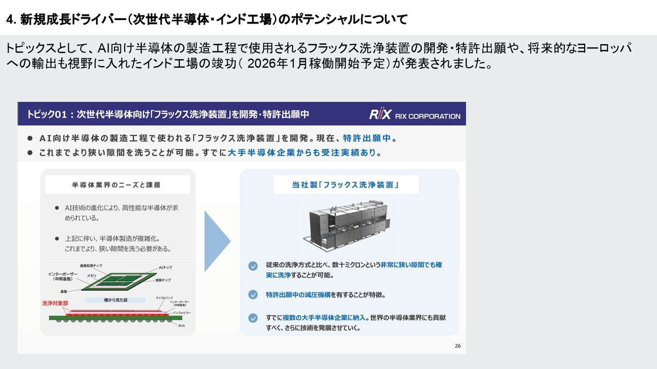 新規成長ドライバー(次世代半導体・インド工場)のポテンシャルについて