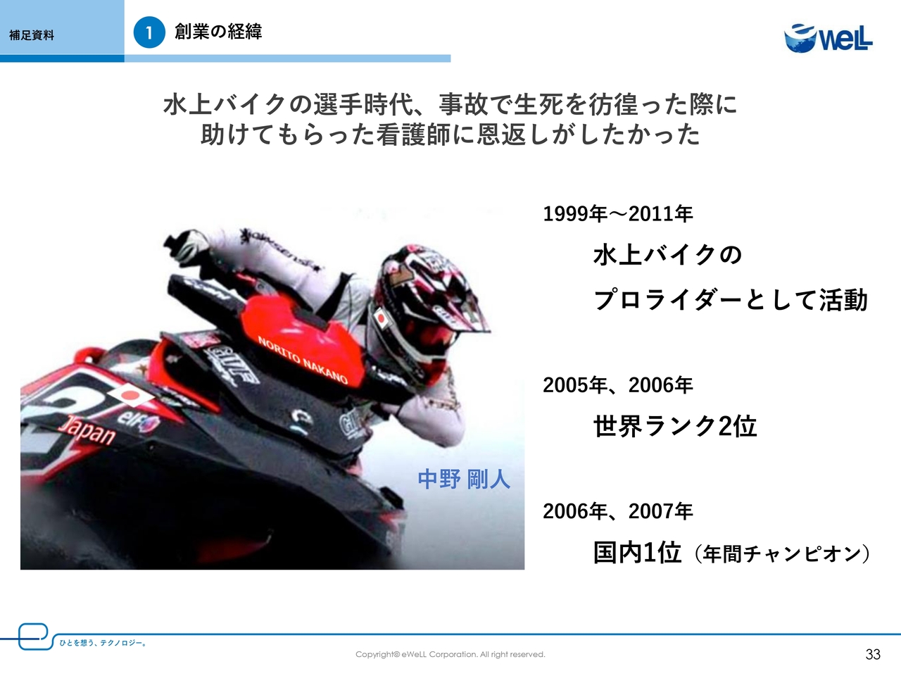 関本:はじめにうかがいたいのは、そもそもの事業の成り立ちについてです。中野社長はかつて水上バイクのプロ選手でいらっしゃったとお聞きしました。そのようなスポーティーな経歴から、なぜ訪問看護の、しかもシステム領域に進まれたのか、大きな転機やきっかけがあれば教えてください。