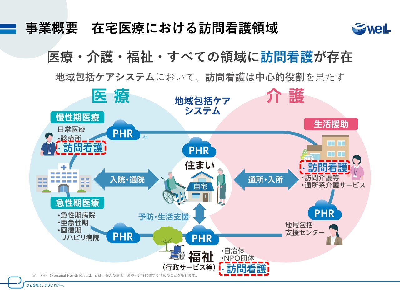 当社は在宅医療のプラットフォーマーとして、医療従事者の業務を効率化し、患者さまが自宅で療養できる体制を整えることを目指しています。さらに、質を落とすことなく、看護を担う訪問看護ステーションが訪問件数を十分に確保できるように、DX、すなわちシステムを活用して効率化を高めることを行っています。