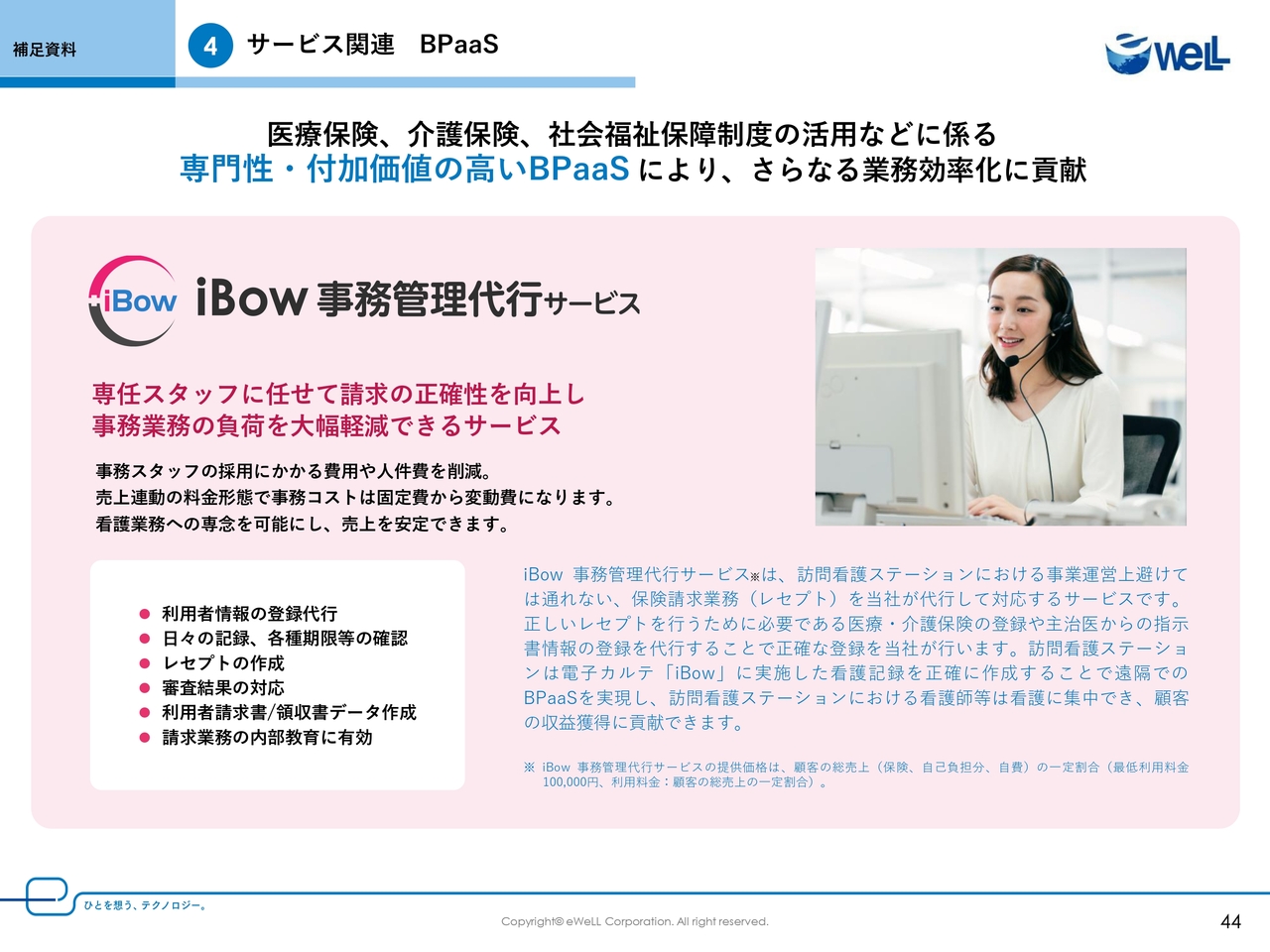加えて、ご質問にありました単価に関してですが、訪問看護ステーションにおける単価は1訪問あたり100円に設定されており、そこから単価が上昇している状況です。現在の具体的な状況としては、顧客単価は8万8,000円にまで上がってきています。