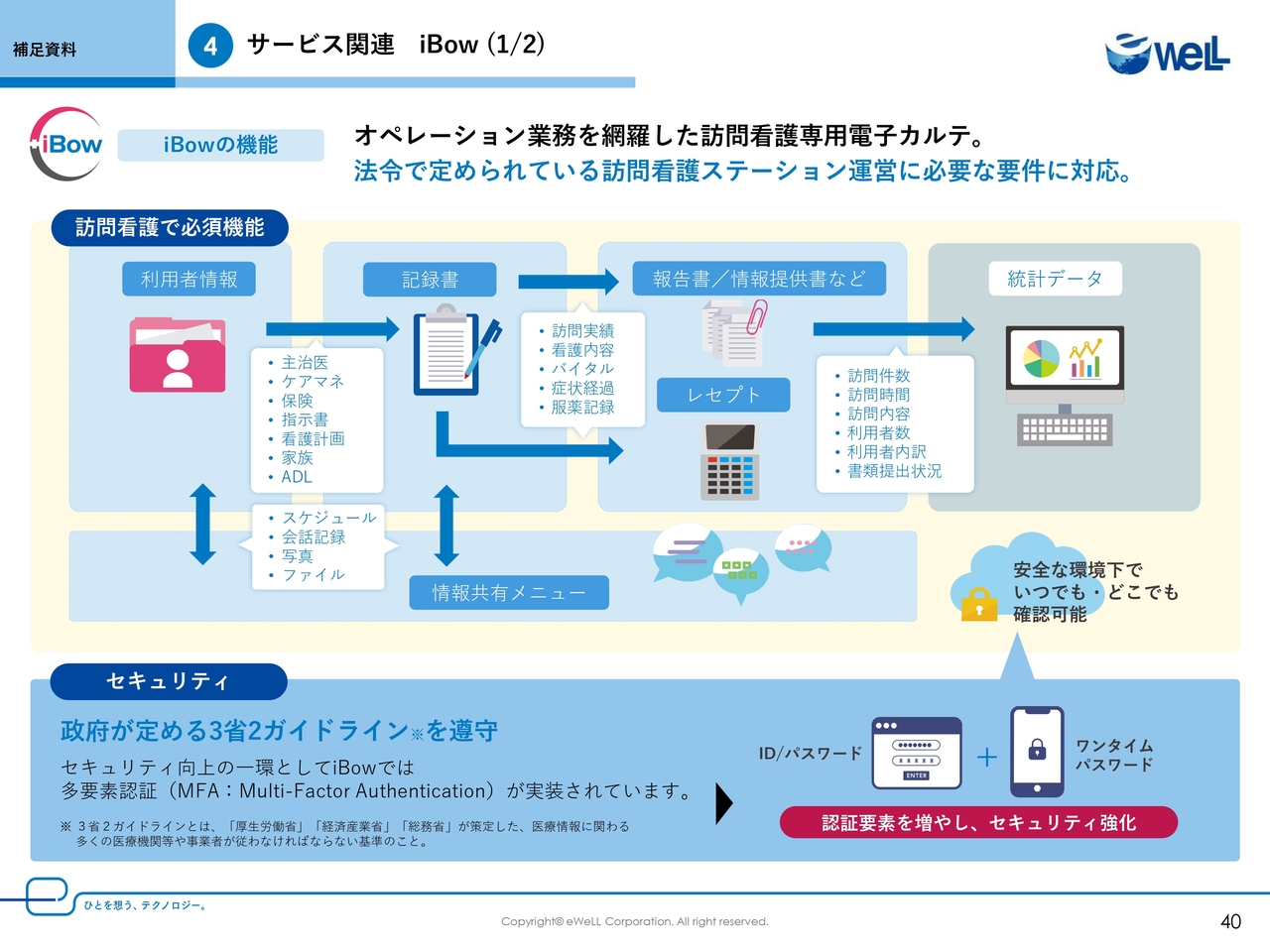 関本:続いて、先ほど市場の展望についてうかがいましたが、プロダクトについてもお聞きしたいと思います。「iBow」という訪問看護向けのプロダクトを展開されていますが、具体的にどのような機能を持つソフトウェアで、利用者にとってどのような価値があるのかについて教えていただけますか?