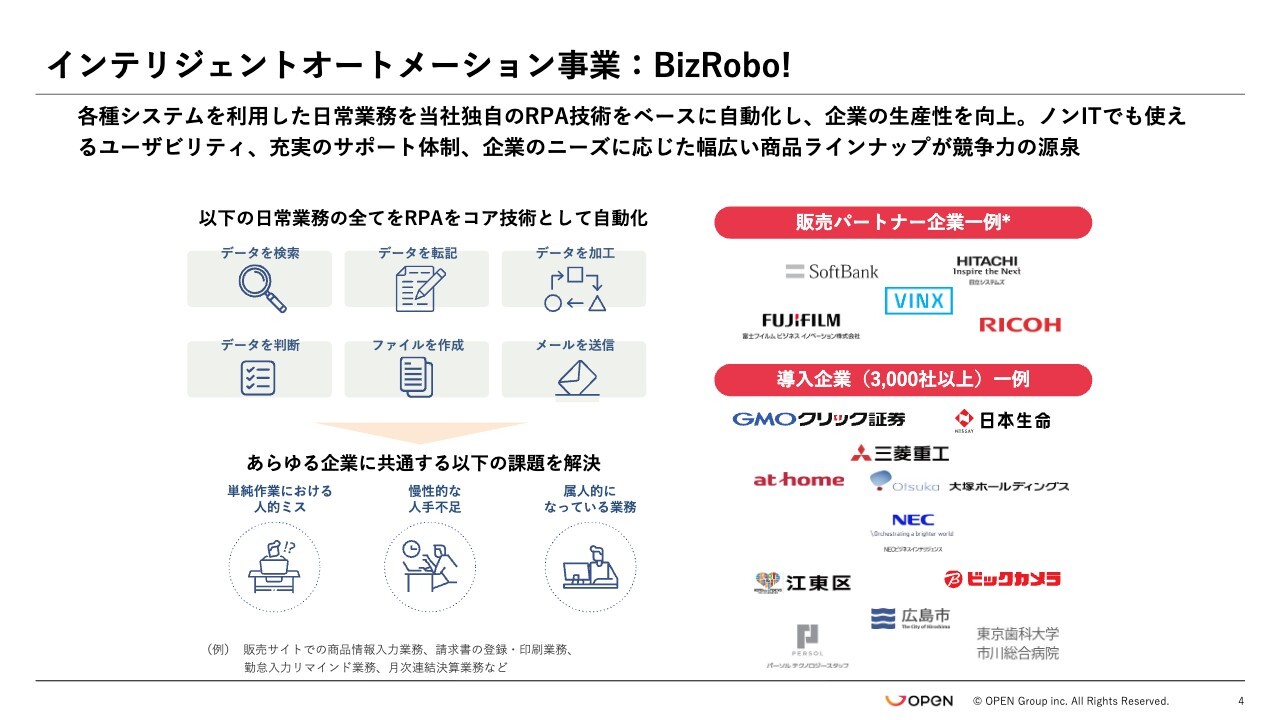 高橋:開示上のセグメントは、インテリジェントオートメーション事業、アドオートメーション事業、その他の3つに分類されています。そのうちの主力製品の1つが「BizRobo!」です。