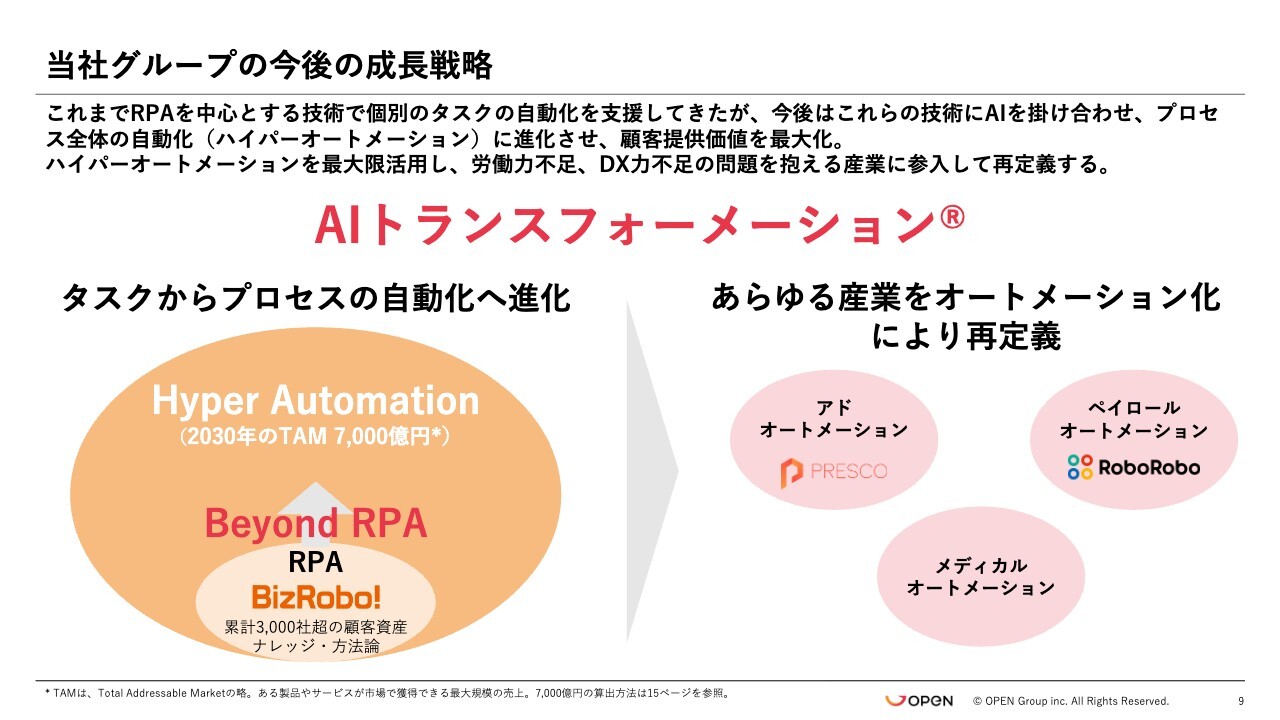 オープングループ、「AIトランスフォーメーション」を掲げ、オートメーション技術を活用した幅広い事業展開を目指す