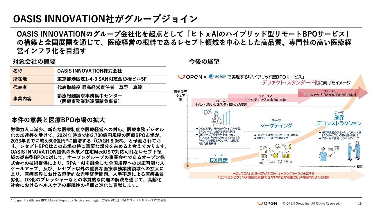 高橋:もう1つの産業再定義として、8月に中核会社を1社買収しました。給与計算と同様に、医療機関でも地域密着型の零細企業が多く存在しており、そこでは自力でDX化やDX投資を進めるのが難しいという課題を抱えています。これらに対しても、当社のハイパーオートメーション技術を活用し、徹底的な自動化を推進します。
