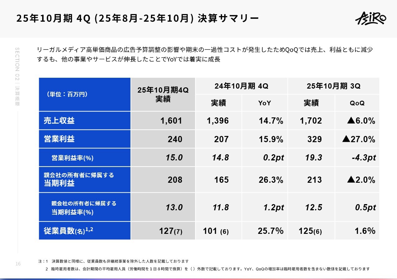 25年10月期4Q(25年8月ー25年10月)決算サマリー