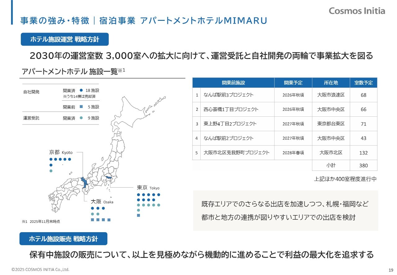 コスモスイニシア、アパートメントホテル「MIMARU」で事業拡大を加速 2030年に3,000室体制へ