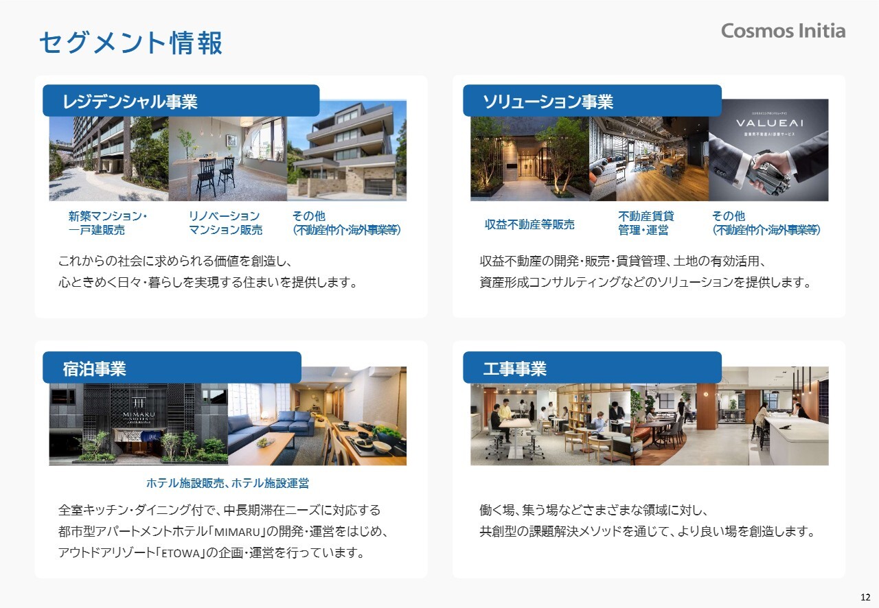 髙智:当社の事業内容についてです。当社は、レジデンシャル事業、ソリューション事業、宿泊事業、工事事業の4つの事業を展開しています。