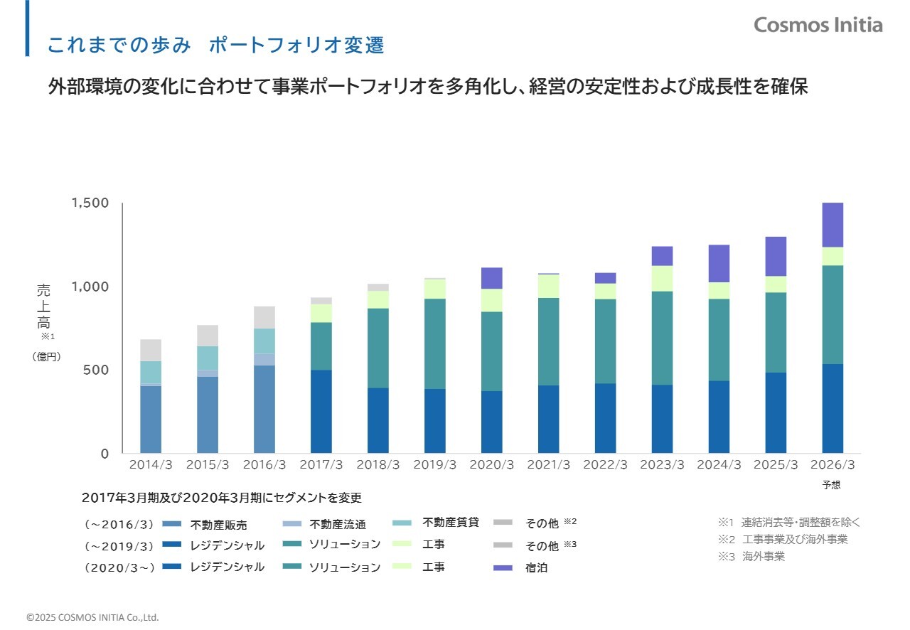 その後、市場回復に向けた準備を着実に進め、現在では、宿泊事業は成長エンジンとして機能しています。2026年3月期の業績予想としては、売上高1,520億円、営業利益110億円を見込んでいます。
