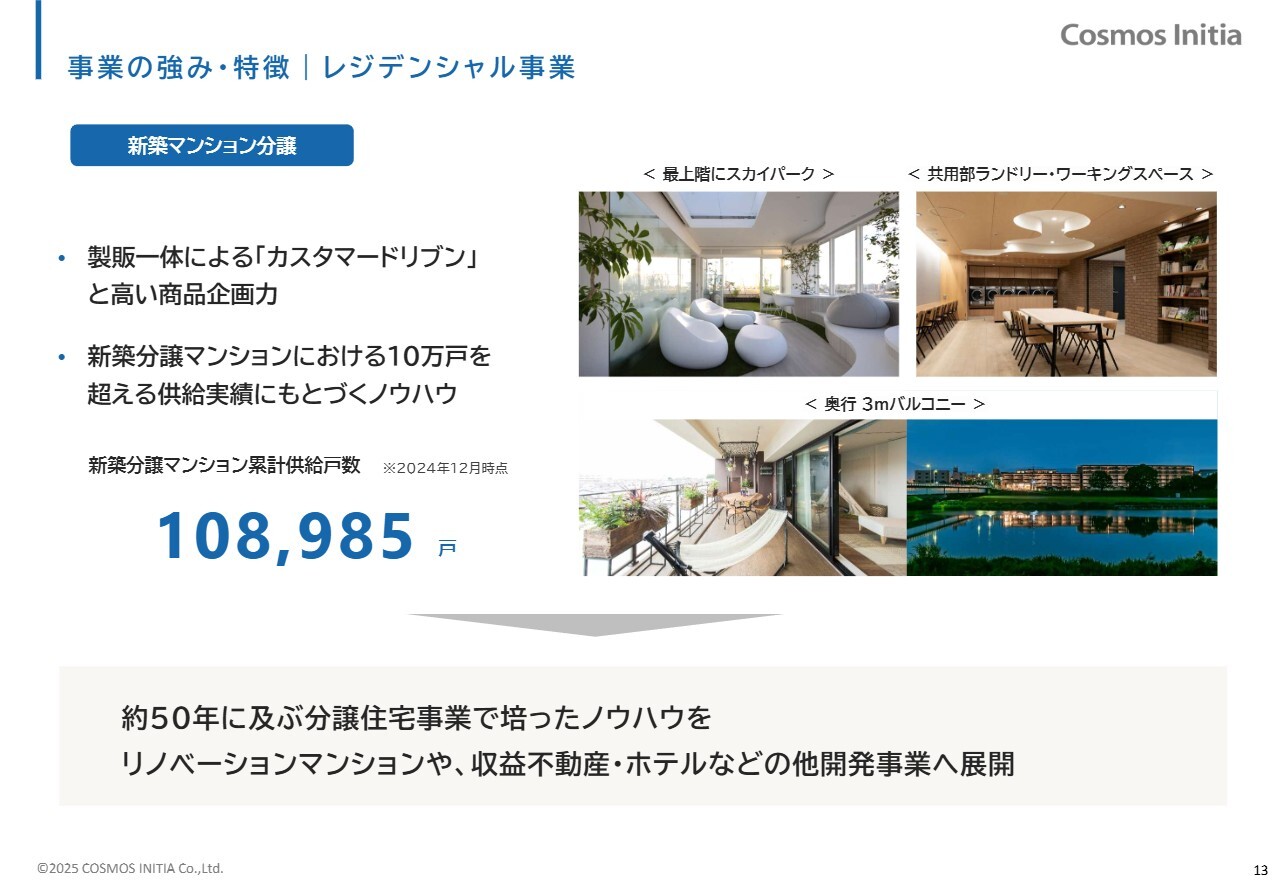 髙智:各事業についてご説明します。レジデンシャル事業では、祖業である新築マンション事業を引き続き展開しています。