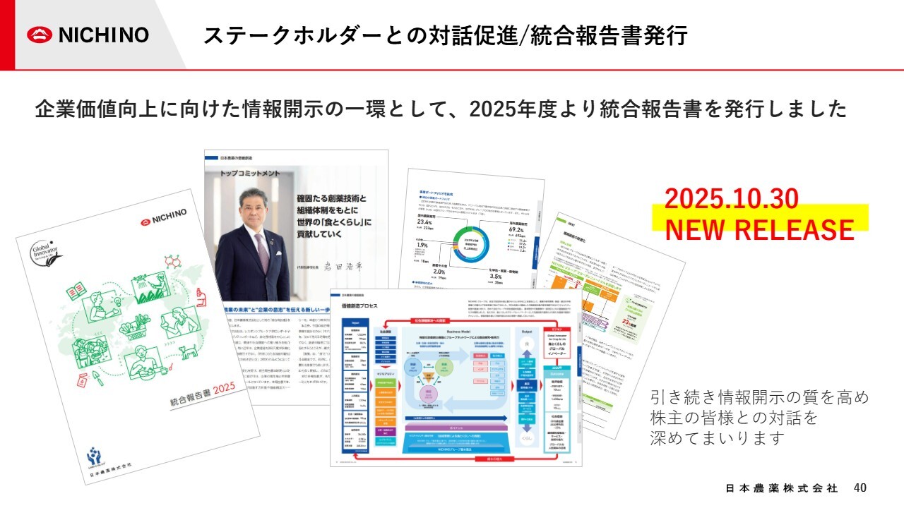 当社は企業価値向上に向けた情報開示の一環として、初めて統合報告書を発行し、今年10月30日に公開しました。