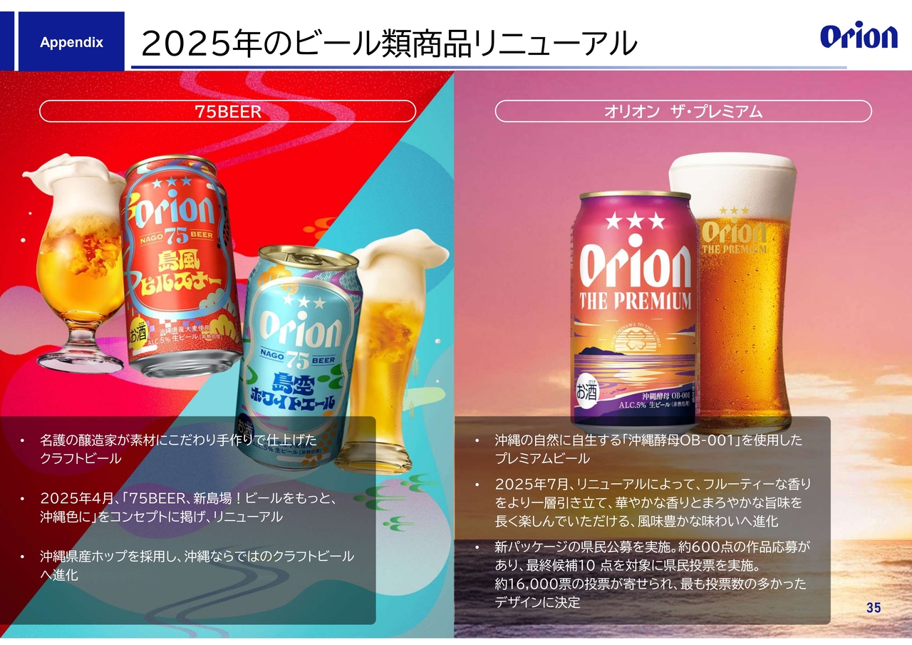 また、「オリオン ザ・プレミアム」については、2025年7月にリニューアルを行いました。デザインは県民からの公募によって集まった600作品の中から、県民の1パーセント以上にあたる1万6,000票の投票を経て、最優秀デザインを採用しました。
