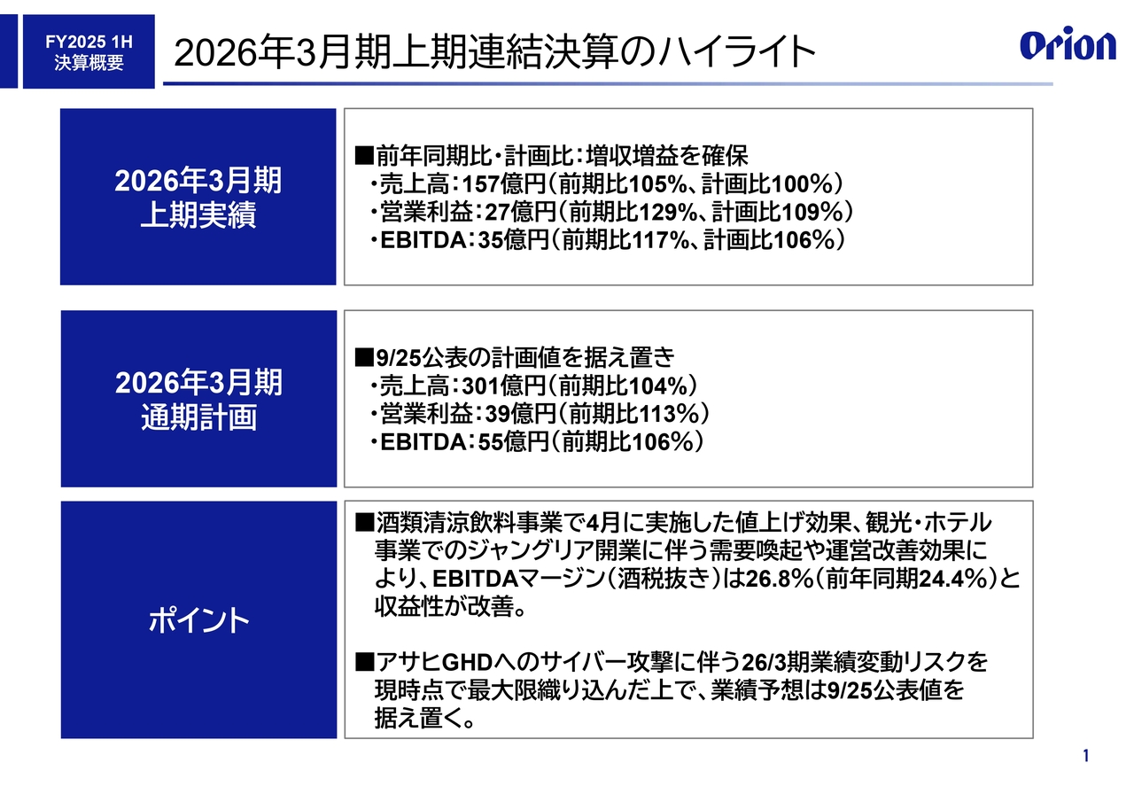 また、後ほど詳しく説明しますが、アサヒグループホールディングス株式会社(以下、アサヒGHD)へのサイバー攻撃により、当社の業績にも変動リスクが発生しています。