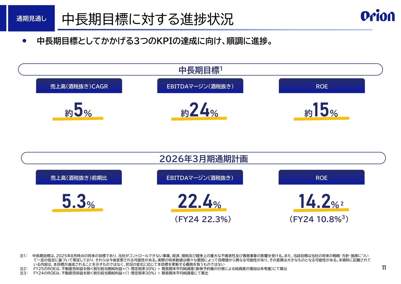 これらのことから、EBITDAマージンは今回、酒税を除いて通期ベースで26.8パーセントと、前年同期の24.4パーセントと比較しても収益性が改善しています。