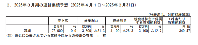 3.2026年3月期の連結業績予想(2025年4月1日~2026年3月31日)