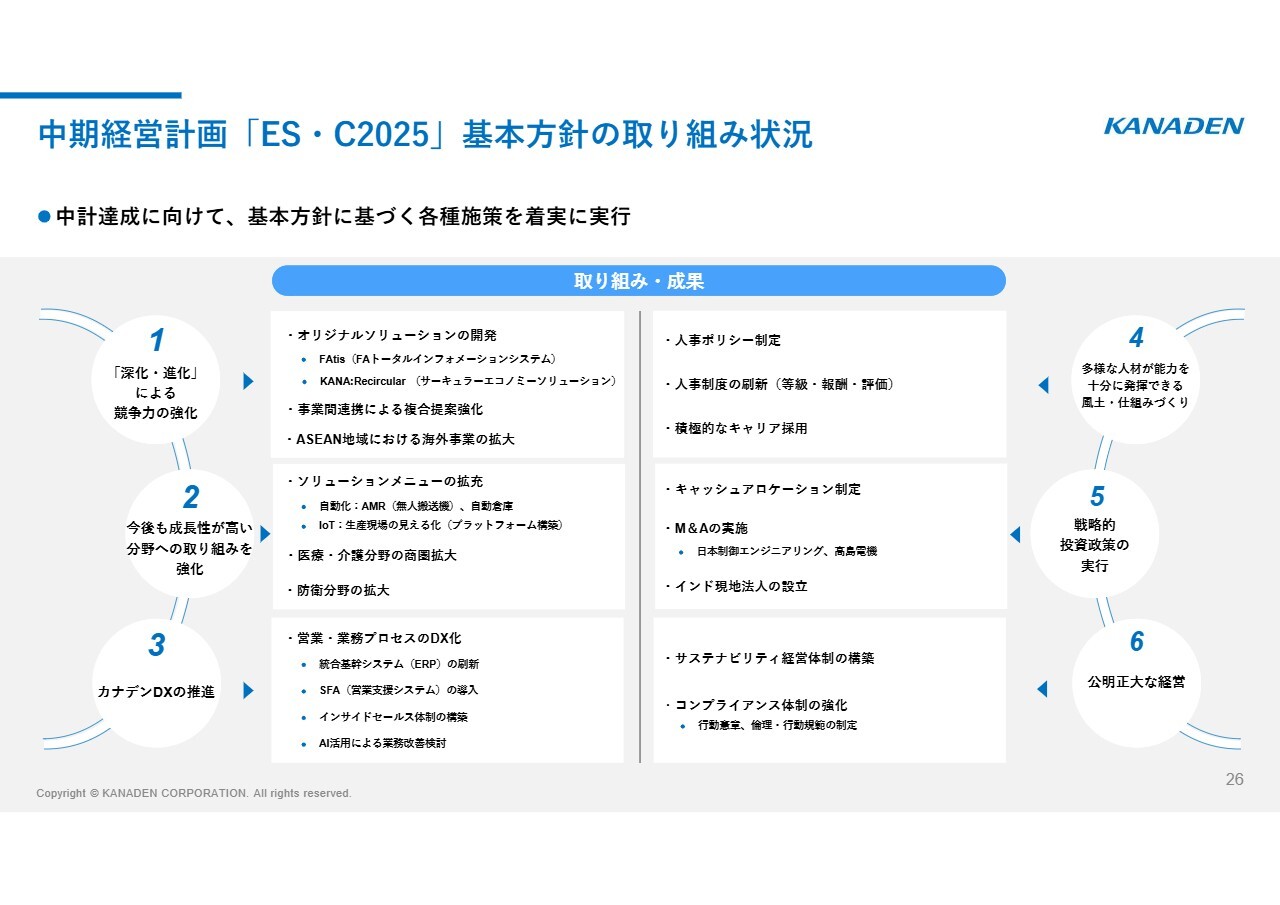 中期経営計画「ES・C2025」基本方針の取り組み状況