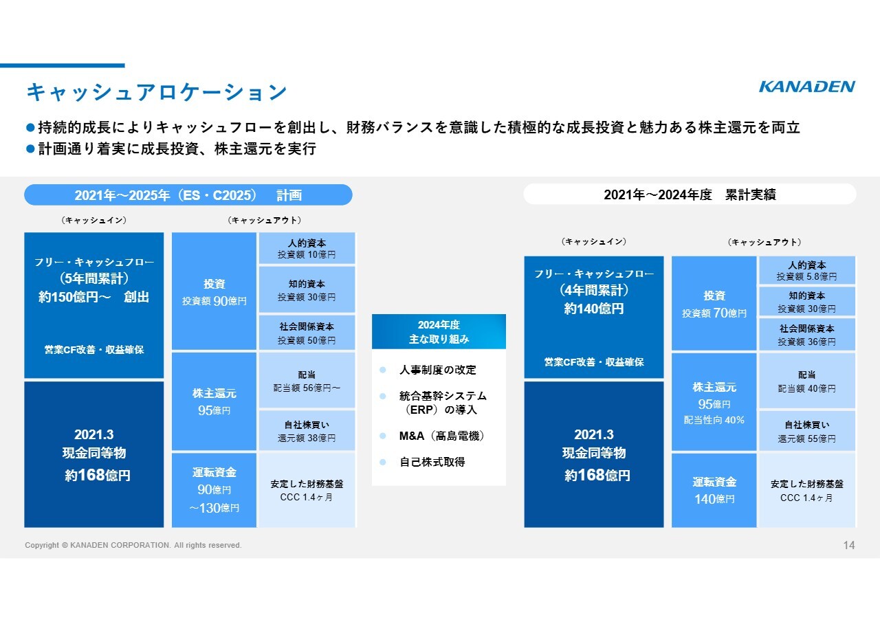 また、それらを支える経営資本の強化として、人事制度や統合基幹システム(ERP)の刷新も進めてきました。今後も財務バランスを意識した成長投資と、魅力ある株主還元の両立を継続していきます。