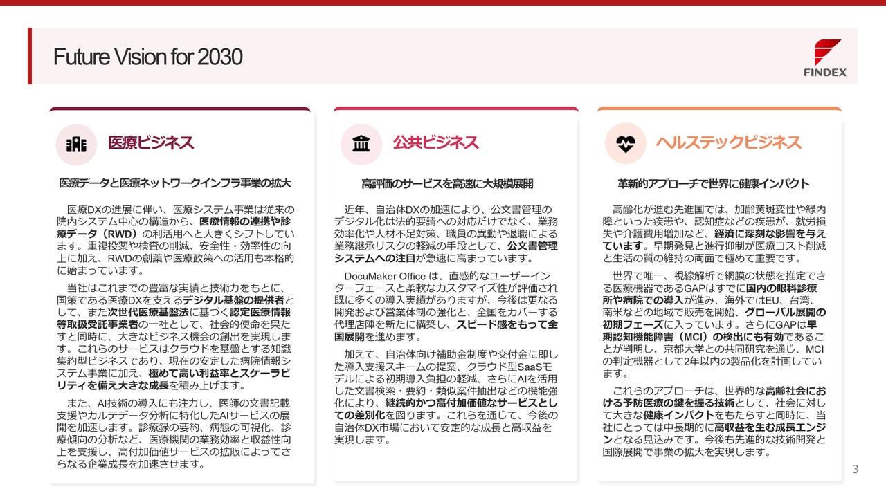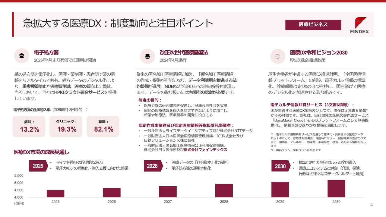 また、電子処方箋プロジェクトへの参画など、先進的な取り組みを通じて、医療業界のニーズを一歩先取りし、日本の医療DXを多角的に推進していく方針です。