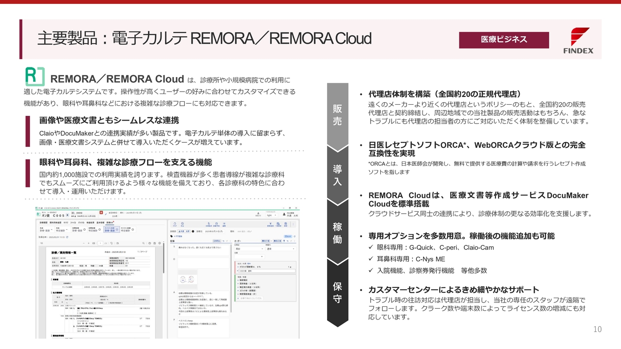 また、HPKIセカンド電子証明書を用いた電子処方箋や、中小医療機関への「DocuMaker Cloud」の提供などを通じて、医療全体のネットワークの拡大に取り組んでいます。市場環境の変化に対応しながら、ビジネスモデルを強化し、主力製品のさらなる拡販を進めています。