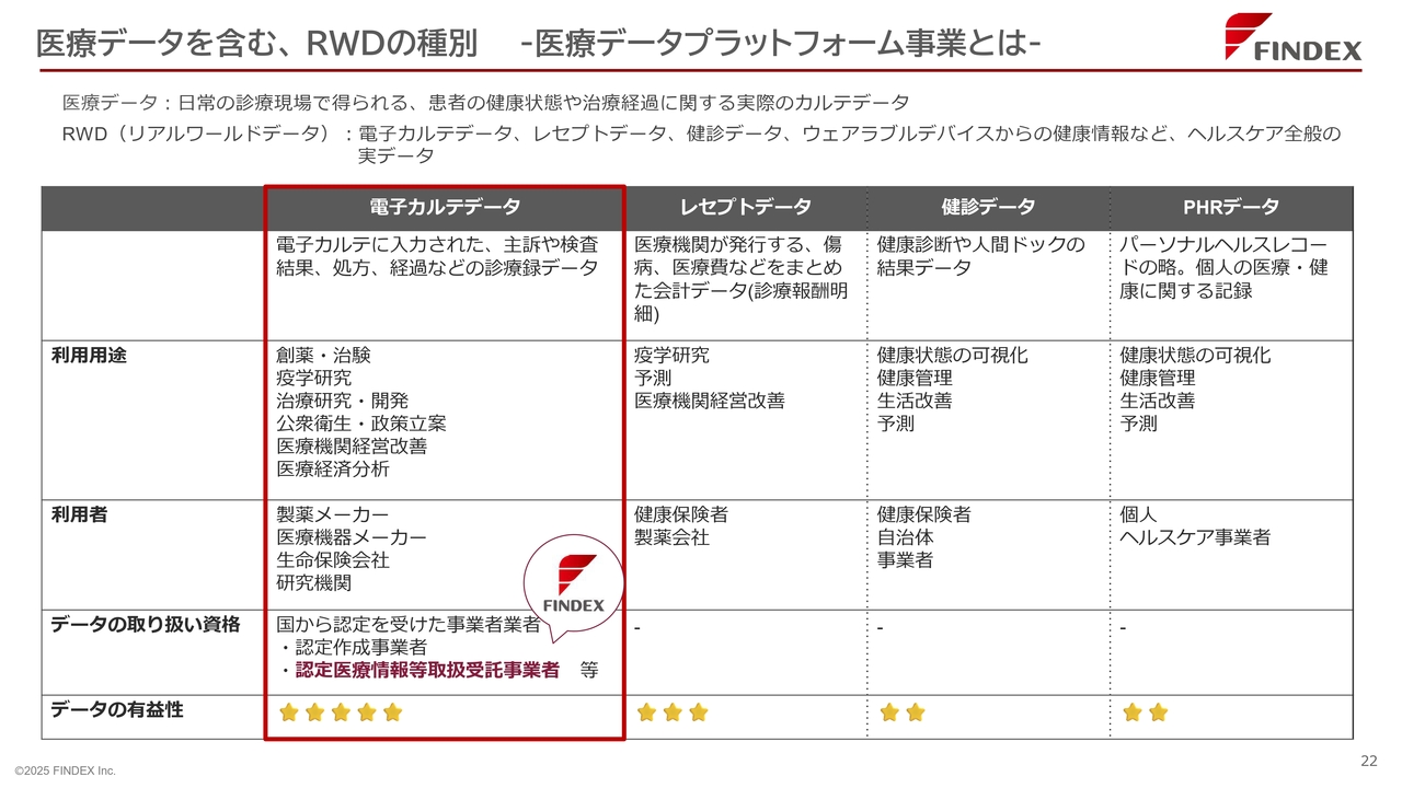 今後の成長ドライバーとしての注目ポイントです。当社は、改正次世代医療基盤法に基づき、内閣府より認定医療情報等取扱受託事業者として認定を受けました。これにより、日本最大級の医療データプラットフォームの構築を進めていきます。