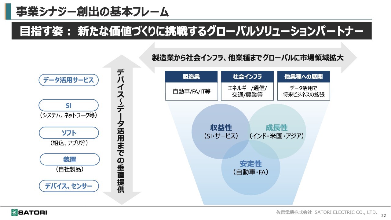 キーワードは「収益性」「成長性」「安定性」です。このキーワードを念頭に置き、事業を展開していきます。