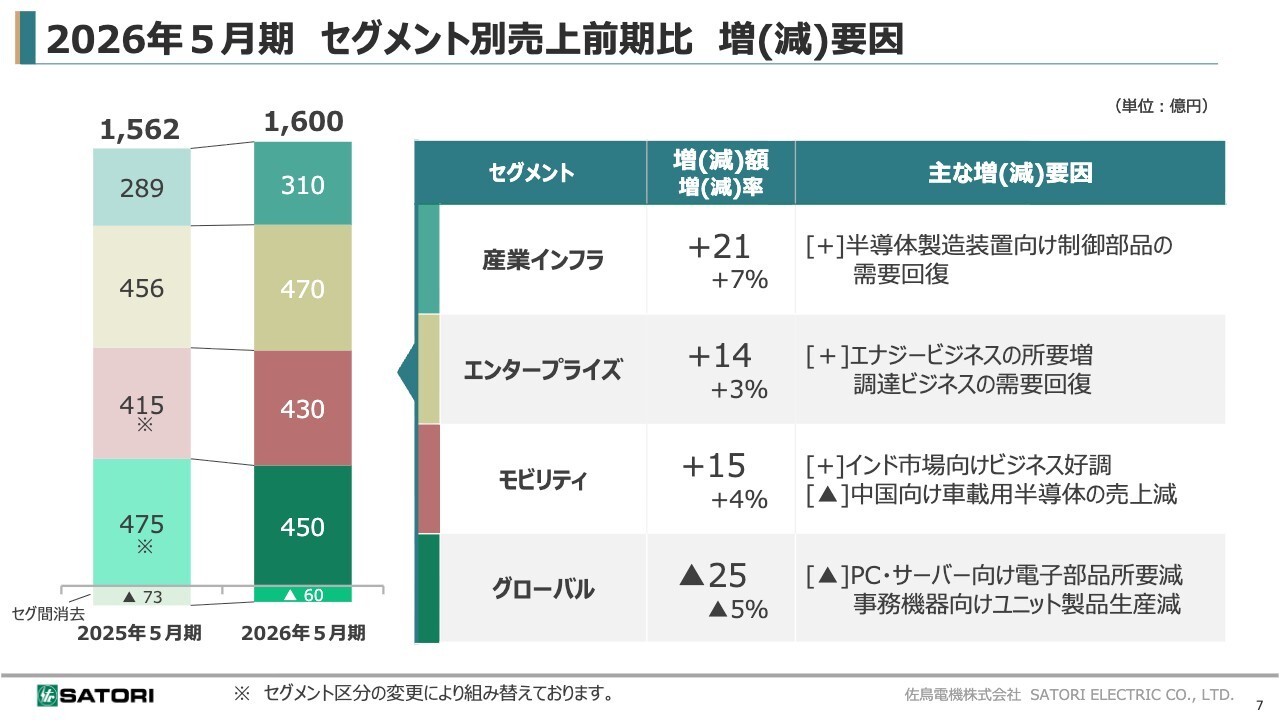 2026年5月期のセグメント別売上増減要因についてご説明します。