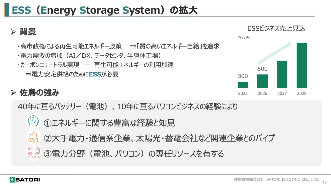 さらに、電力分野の専任リソースを有するという強みもあります。これらの強みを活かし、この「ESS」ビジネスを推進しています。