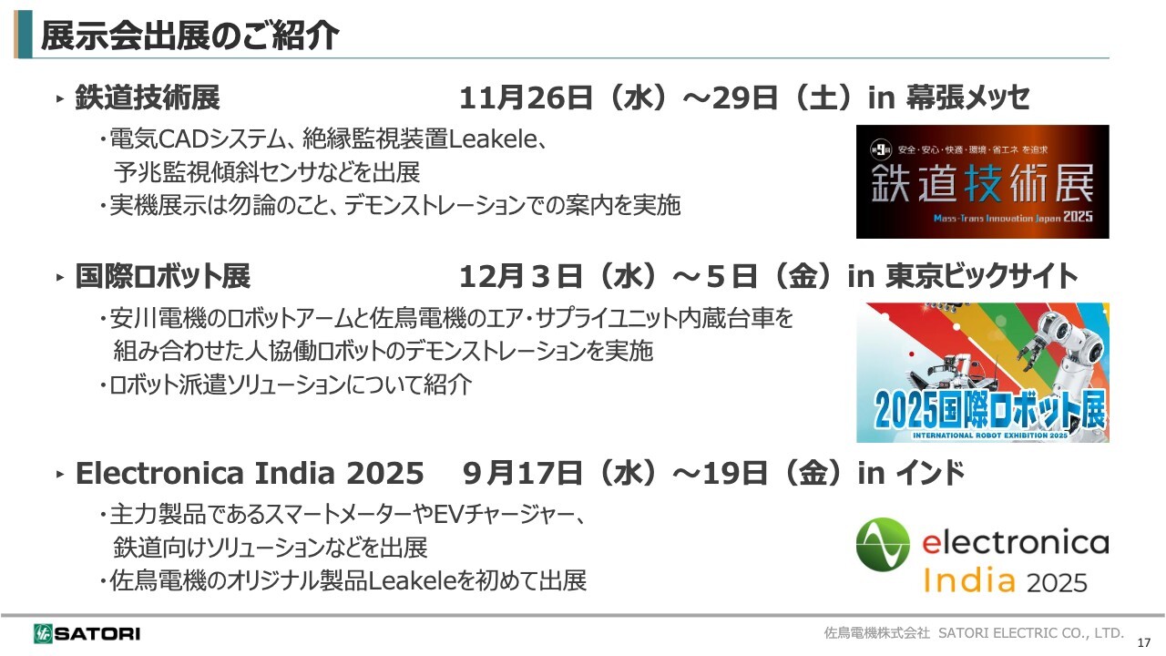 さらに、子会社であるインドSMET(SM Electronic Technologies Pvt. Ltd.)が9月に開催した「Electronica India 2025」に、当社も出展しました。今回初めて絶縁監視装置「Leakele」をインドで展示し、デモンストレーションも行いました。