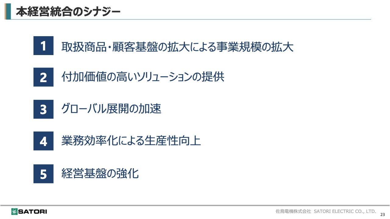1点目は、取扱商品や顧客基盤の拡大による事業規模の拡大です。両社の幅広い製品ラインナップや多様な顧客基盤を活用し、互いの強みを活かしたクロスセルを進めることで、事業領域を広げていきます。