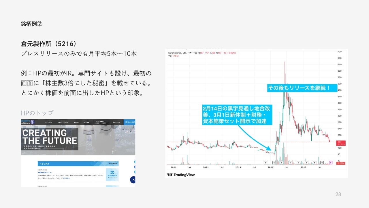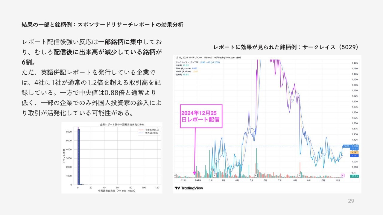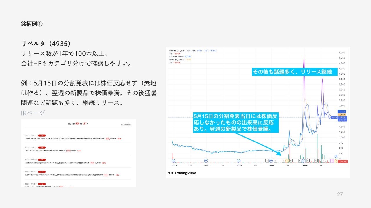 齊藤:業績成長を伴っていないところをはじいたのは、「業績が上がっていくと出来高も上がり、株価も上がるだろう」ということは考えやすいため、IRをどのような要因で行って出来高自体が上がっているのかというところに注目したためです。