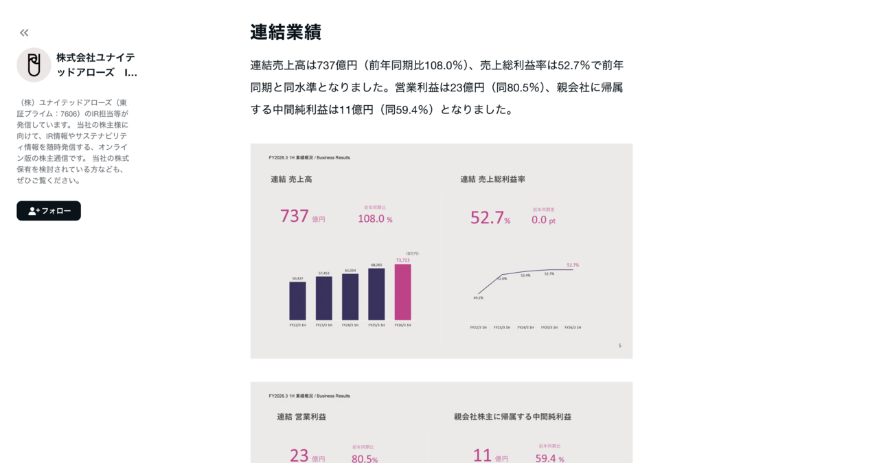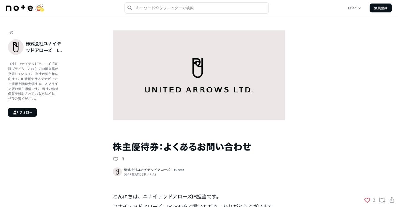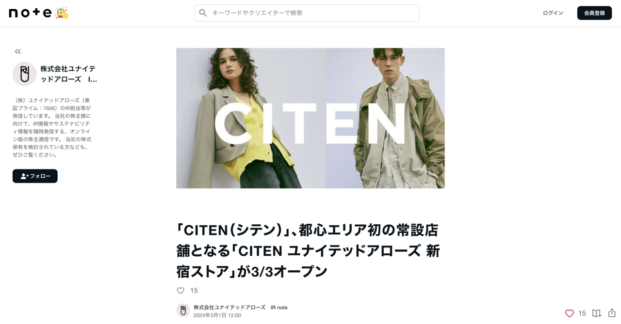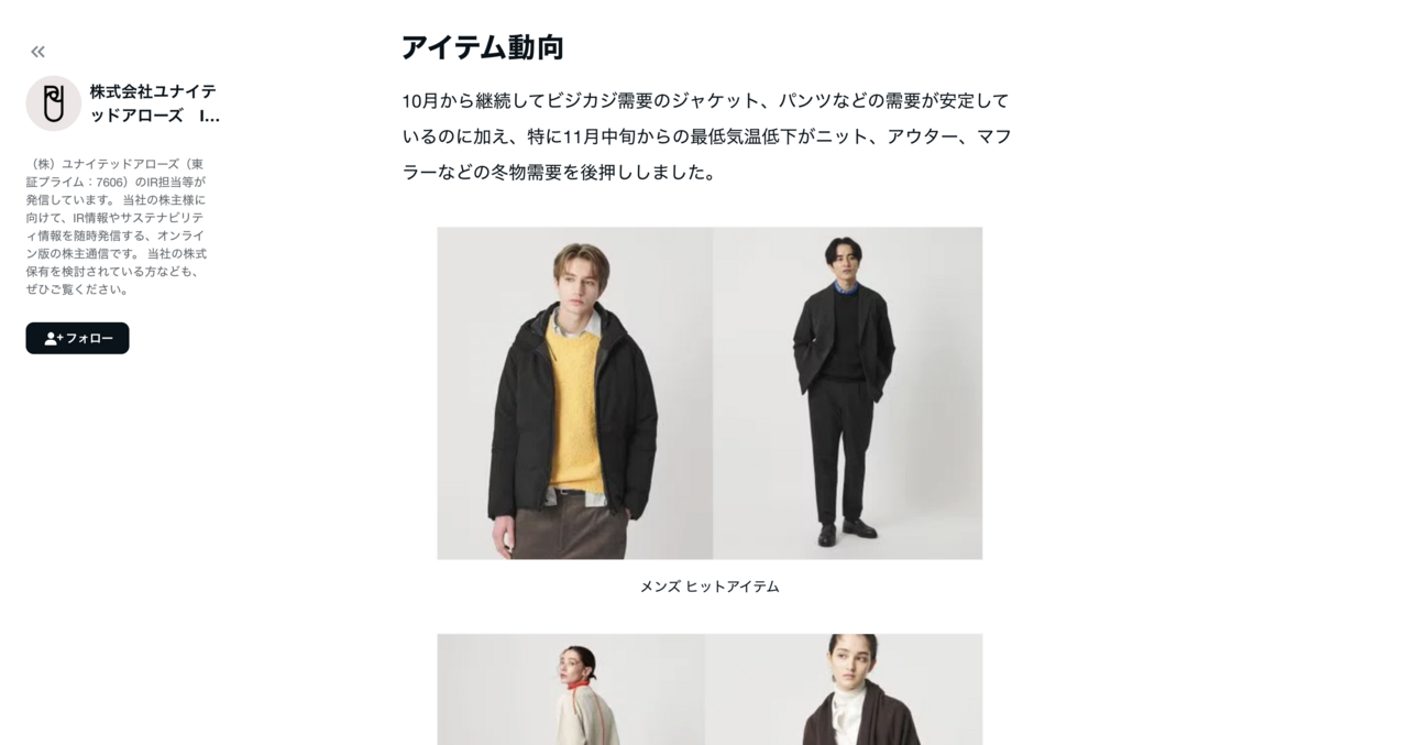 ユナイテッドアローズの場合は、そうした問い合わせ対応のための記事と決算情報などのルーティーンの記事を組み合わせながら発信を続けられていて、本当は「CITEN」のような記事を増やしたいものの、忙しくて増やせていないということですね。