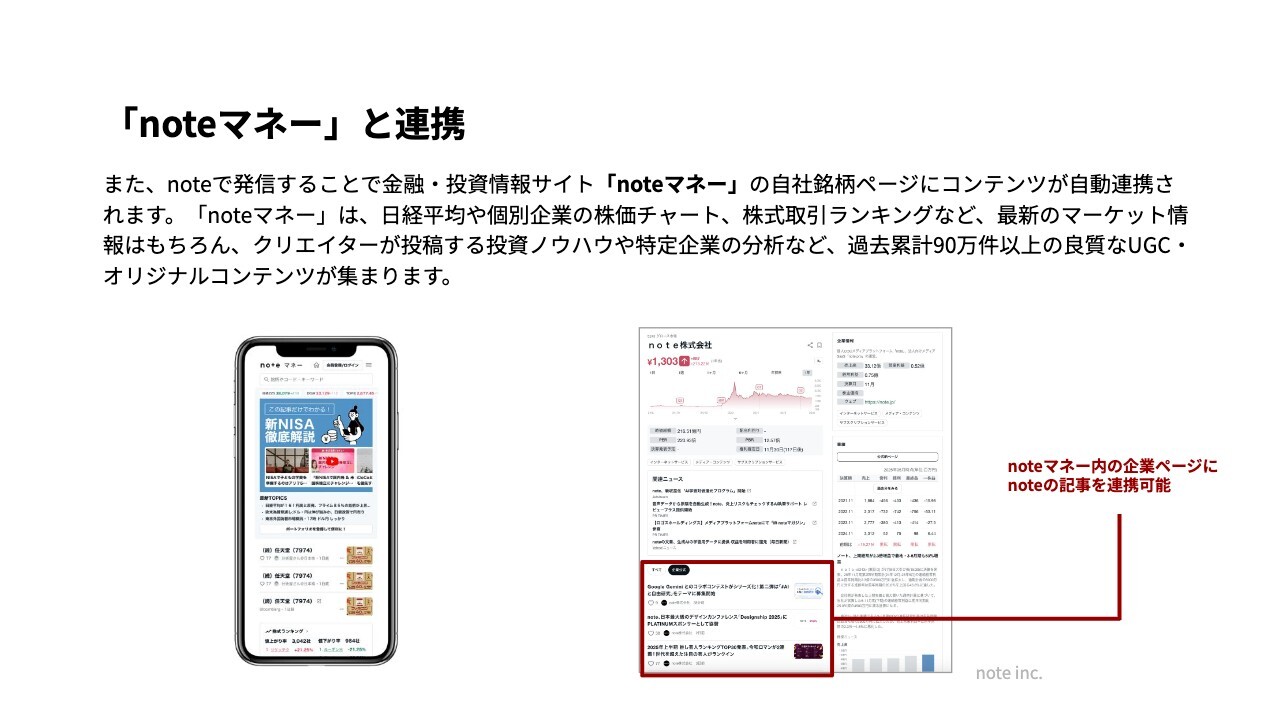 徳力:最近では「noteマネー」という、投資家向けのまとめポータルのような情報サイトをオープンしています。ここには各企業の「note」での発信を投資情報と紐づけて出すような機能も組み合わせています。