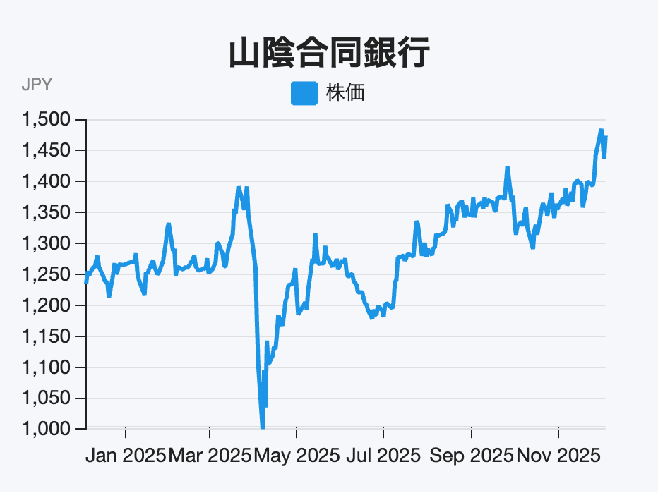 40にのぼる銀行を源流としています。島根・鳥取両県を中核に、山陽、兵庫・大阪をカバーする広域な店舗ネットワークを有しており、特に地盤の山陰両県における同行のシェア(2024年9月期)は、預金が49.7%、貸出金が50.0%となっています。また、野村證券と包括的業務提携を結んでいます。▼山陰合同銀行(8381)の最新記事を読む▼