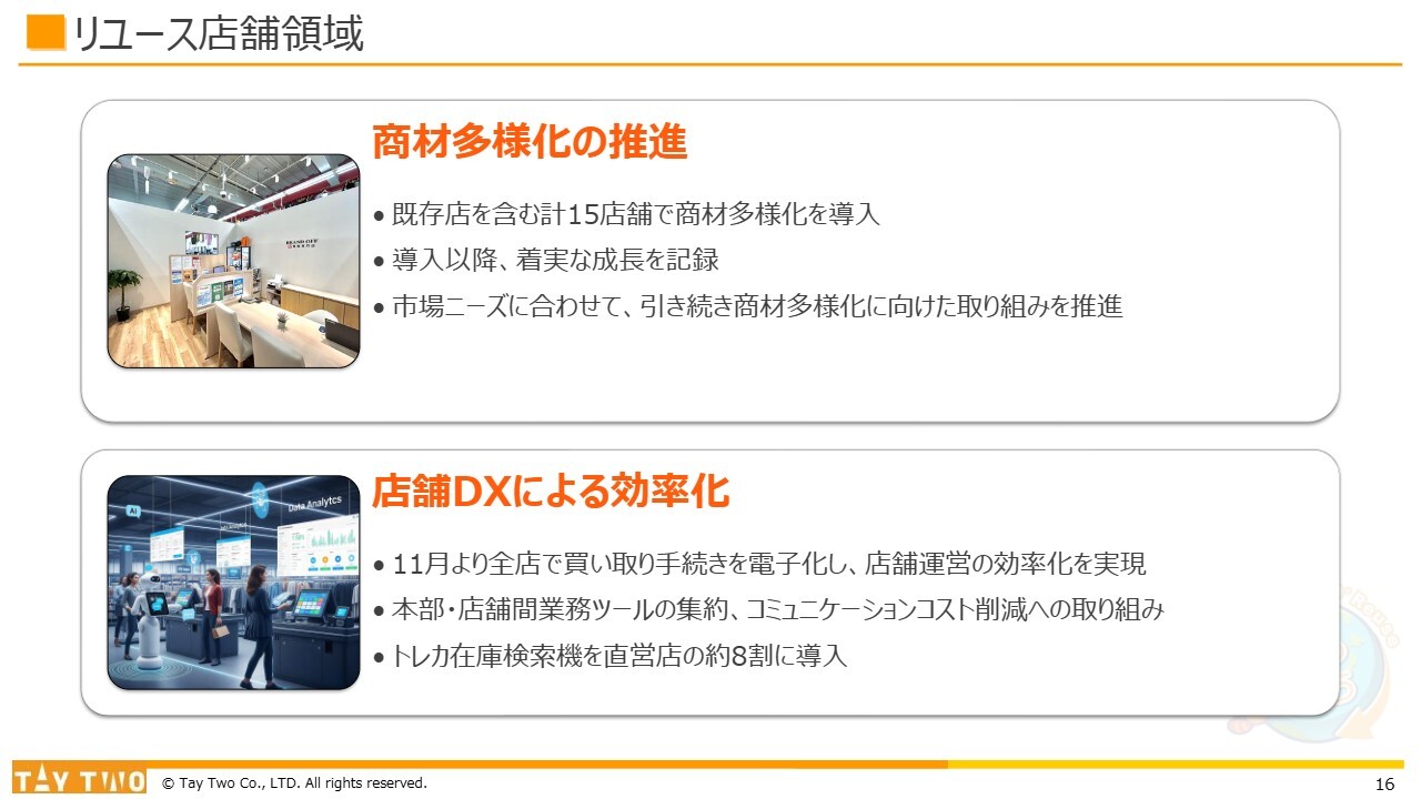 店舗のDXによる効率化については、11月の段階で、全店において買取手続き電子化を導入しました。これにより、さらなる運営効率の向上を実現していきます。