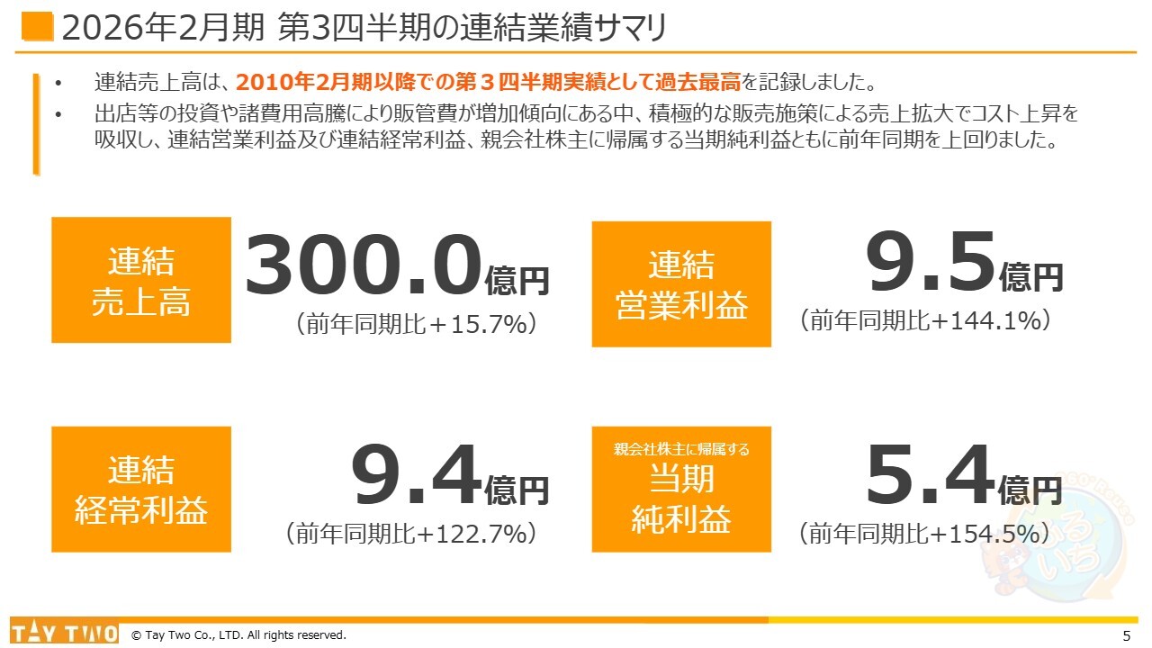 藤原克治氏:株式会社テイツー代表取締役社長の藤原です。それでは、2026年2月期第3四半期の決算説明をします。よろしくお願いします。