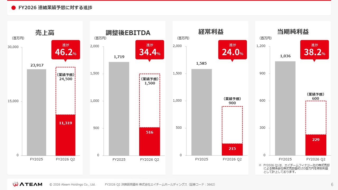 FY2026 連結業績予想に対する進捗