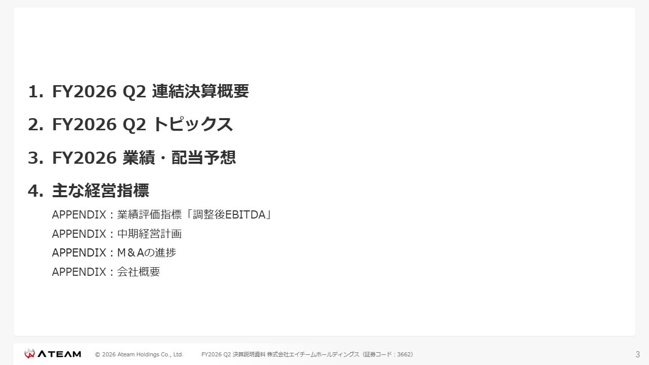 林高生氏:株式会社エイチームホールディングスFY2026第2四半期の決算説明をご覧いただき、ありがとうございます。