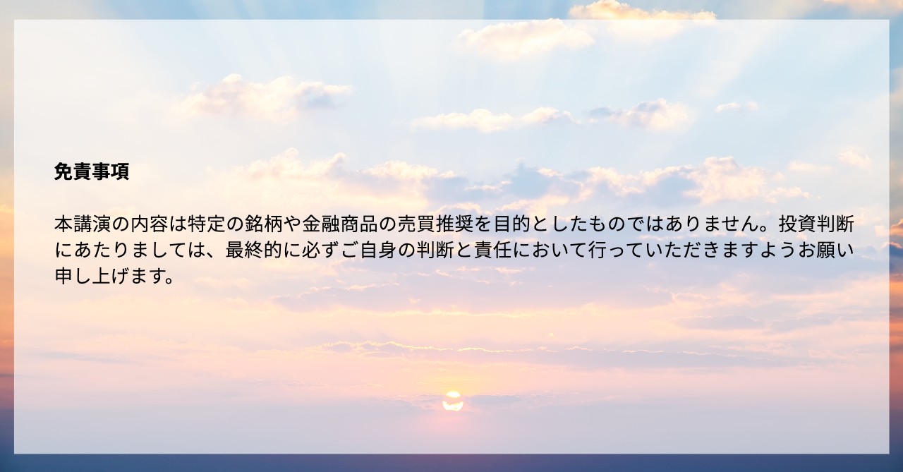 本日は決算や個別銘柄の話をしますが、私は投資助言・代理業の登録がないため、銘柄の推奨などはできません。本日の内容は特定の金融商品の売買推奨を目的としたものではありません。投資判断はご自身の判断と責任でお願いします。