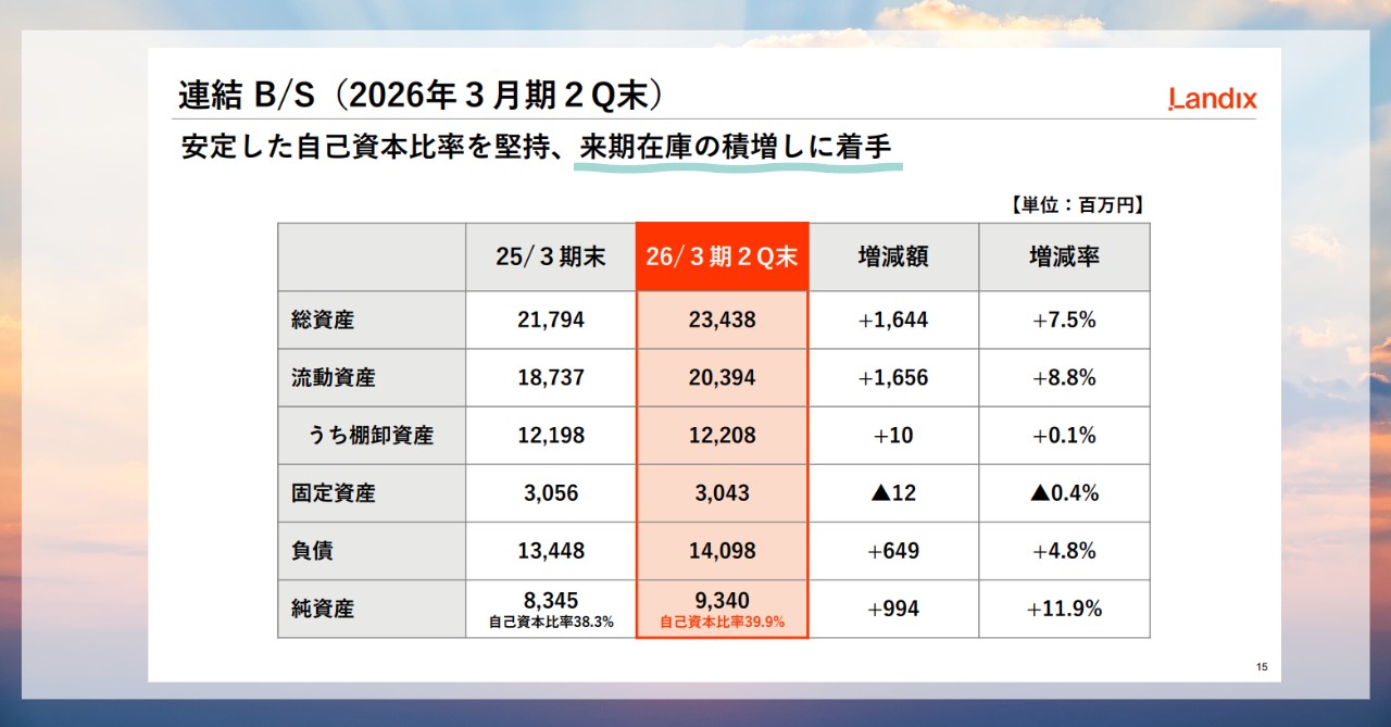 スライドはランディックスの2026年3月期第2四半期決算説明資料です。