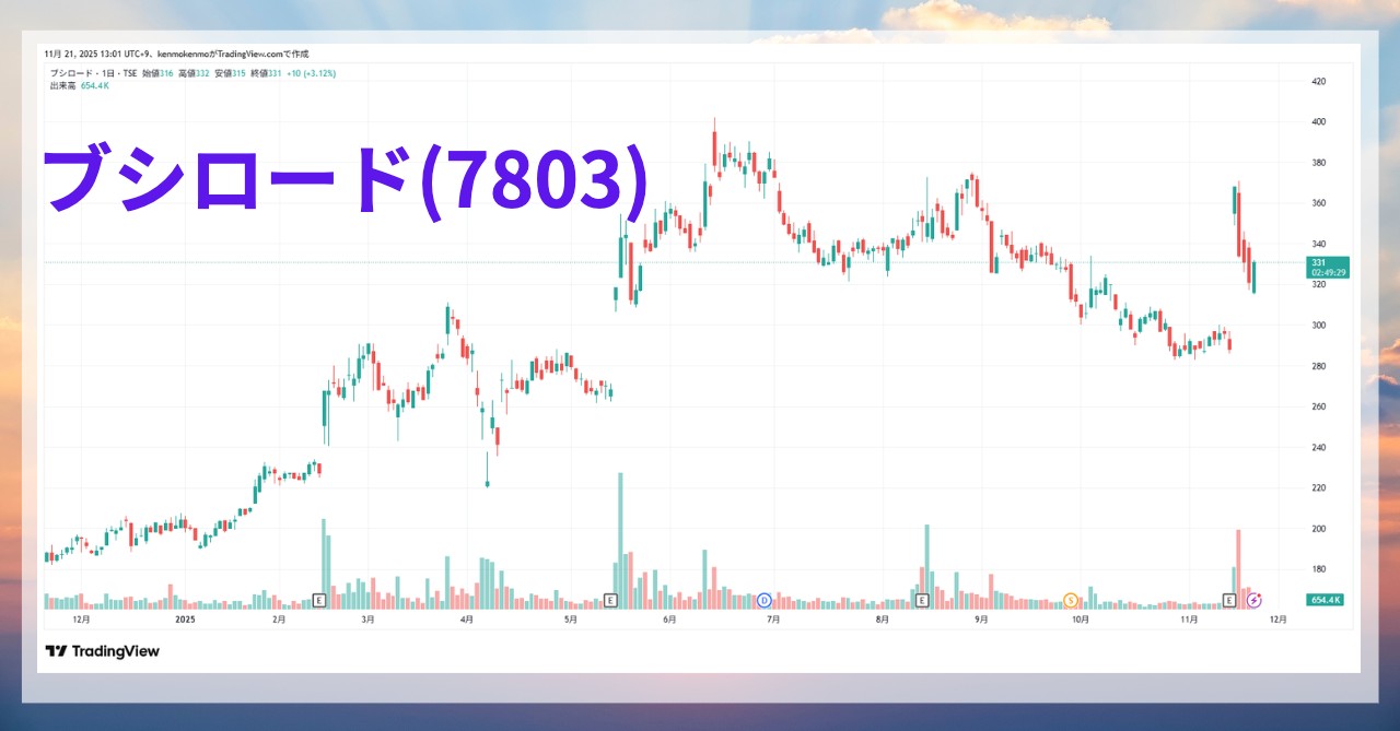 ブシロードも、決算内容は良かったと思います。6月決算の会社で、第1四半期の決算は進捗が非常に良かったのですが、これも決算の翌営業日こそ窓を開けて陽線だったものの、以降ずっと右肩下がりで値を消す展開になってしまっています。
