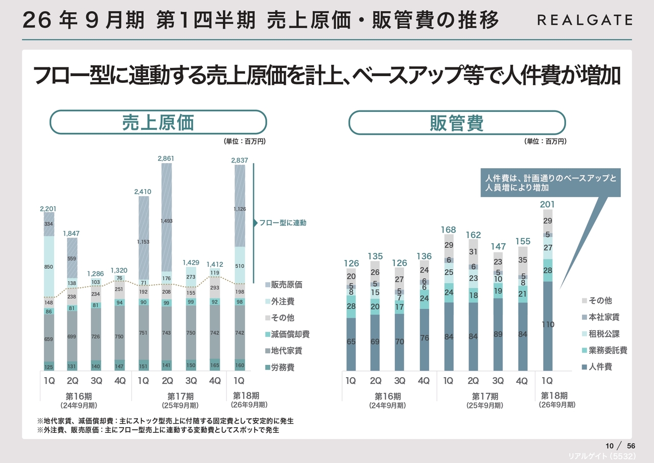 岩本:ストック型売上への影響については、物件を売却した月にもよりますが、この物件の決済は10月に行っているため、11月と12月の2ヶ月分のインパクトがあり、その影響が出ています。また、前期に戦略的に解約した物件があったことが影響し、前期(2025年9月期)第4四半期と今期(2026年9月期)第1四半期の売上が横ばいだったと考えています。