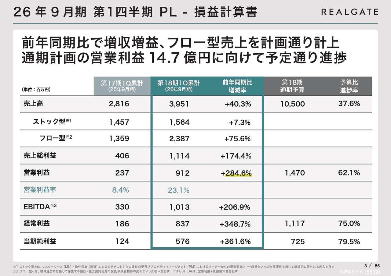 岩本裕氏(以下、岩本):みなさま、こんにちは。株式会社リアルゲイト代表取締役の岩本裕です。2026年9月期第1四半期の決算説明を行います。